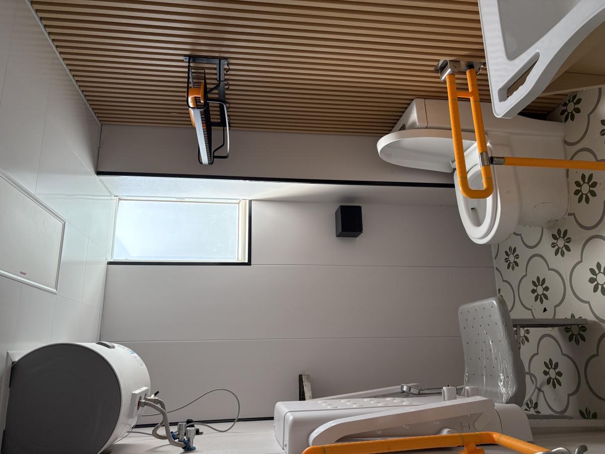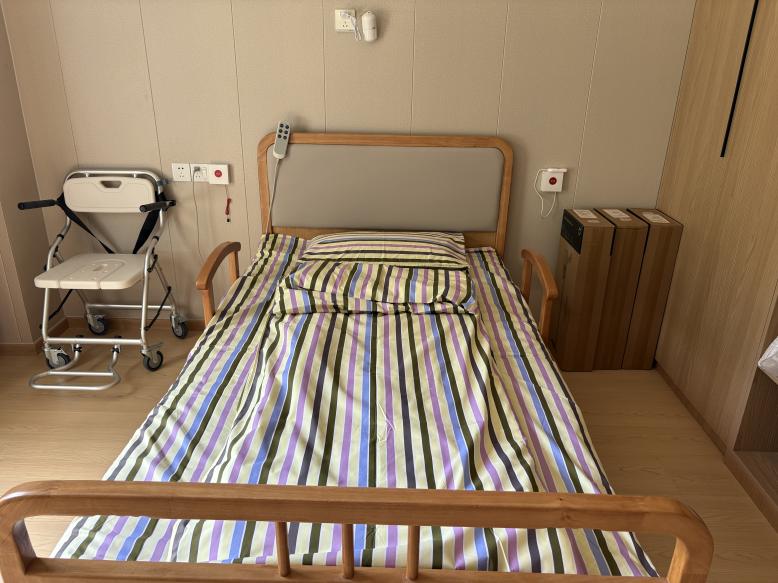 老年照护实训室。我们真实复刻了一个经过专业适老化改造的智能居家养老空间。房间内没有门槛,通道宽敞便于轮椅通行;卫生间配备了无障碍淋浴间、安全扶手和沐浴椅;家具圆角化处理,防滑地面……每一个细节,都在默默守护长者的安全。