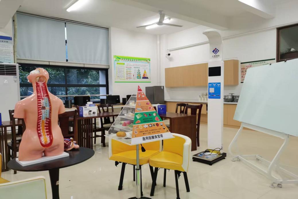 营养评估与健康管理实训室构建了集数据采集、分析评估与实践干预于一体的综合性实训平台。实训室配备人体指标智能称、血氧与血压心率监测设备、专业级膳食评估与配餐软件,以及标准化配餐厨房,形成了从健康指标测量、营养状况评估到个性化膳食设计与健康干预指导的完整实践链条。