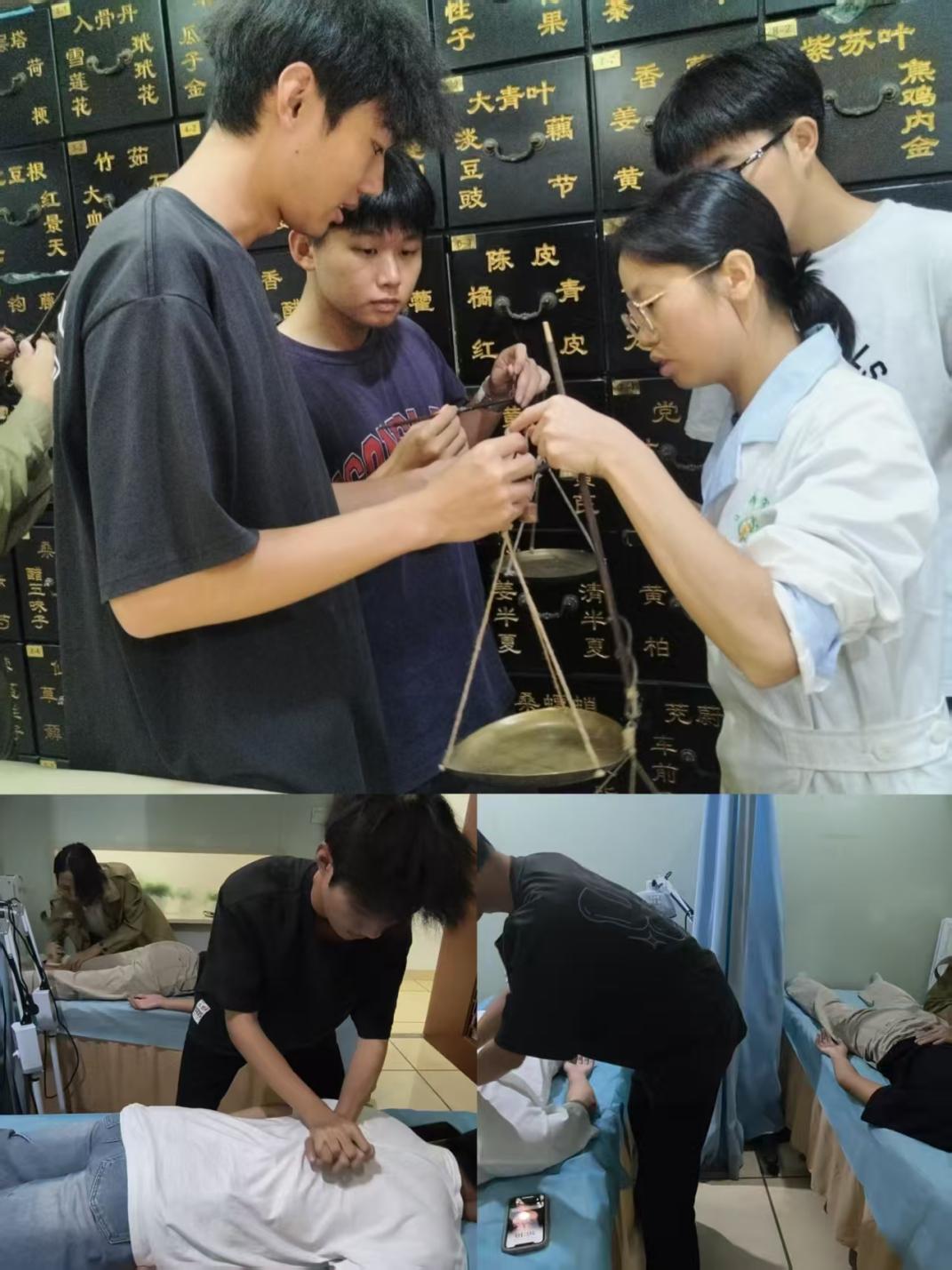 随后,中医康复技术专业的5名优秀学生正式开启周末实习之旅。在门诊医师的悉心指导下,同学们全身心投入实践学习:在药房仓库熟悉中药材属性与存储规范,在诊疗区协助整理处方、学习辨证思路,亲手参与称药、煎药等实操环节,还利用专业所长协助门诊完成视频剪辑等宣传工作。理论与实践的深度结合,让同学们切实掌握了中医康复相关实操技能,积累了宝贵的临床经验。