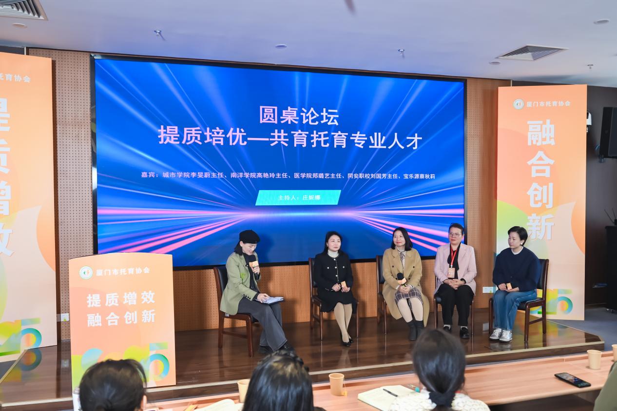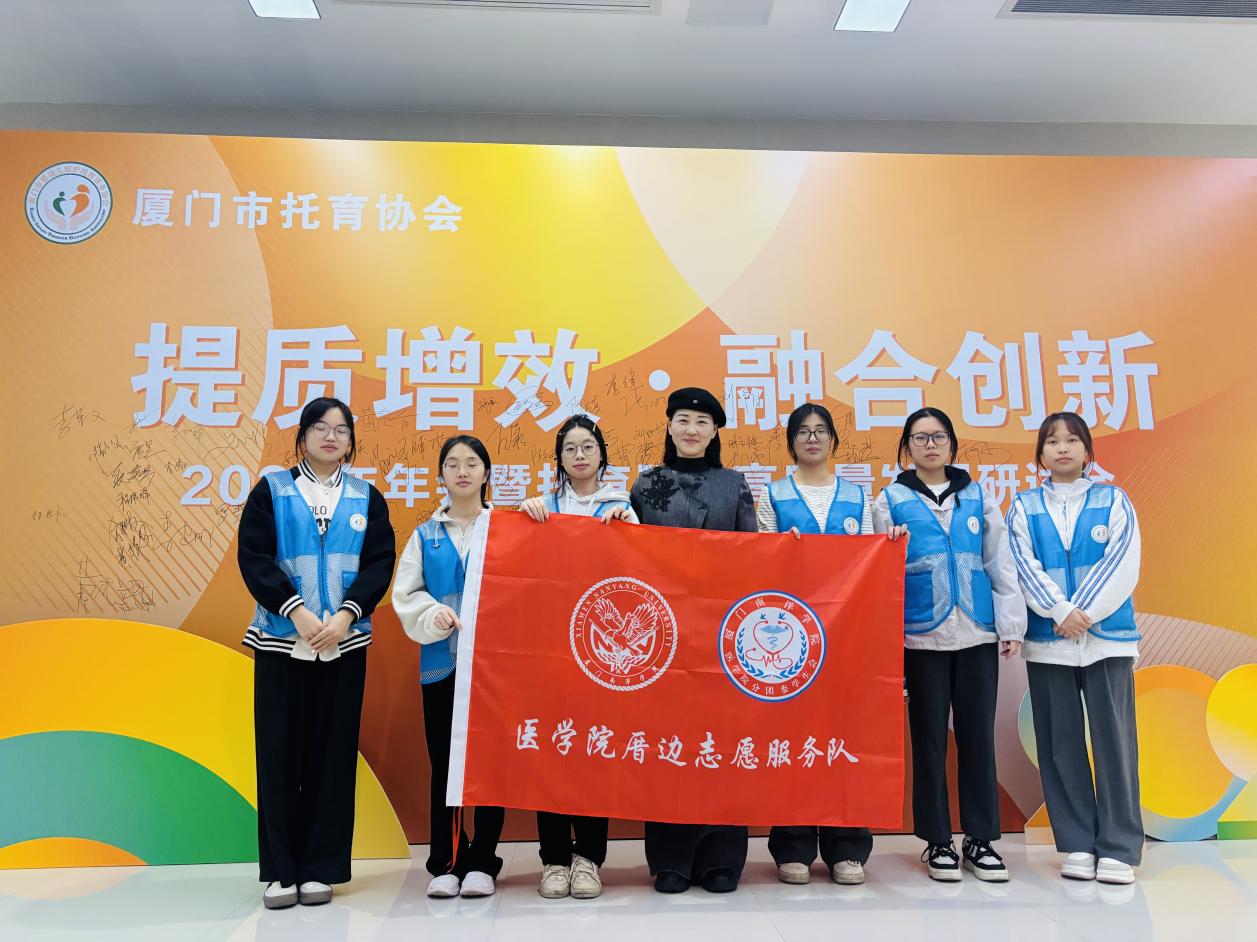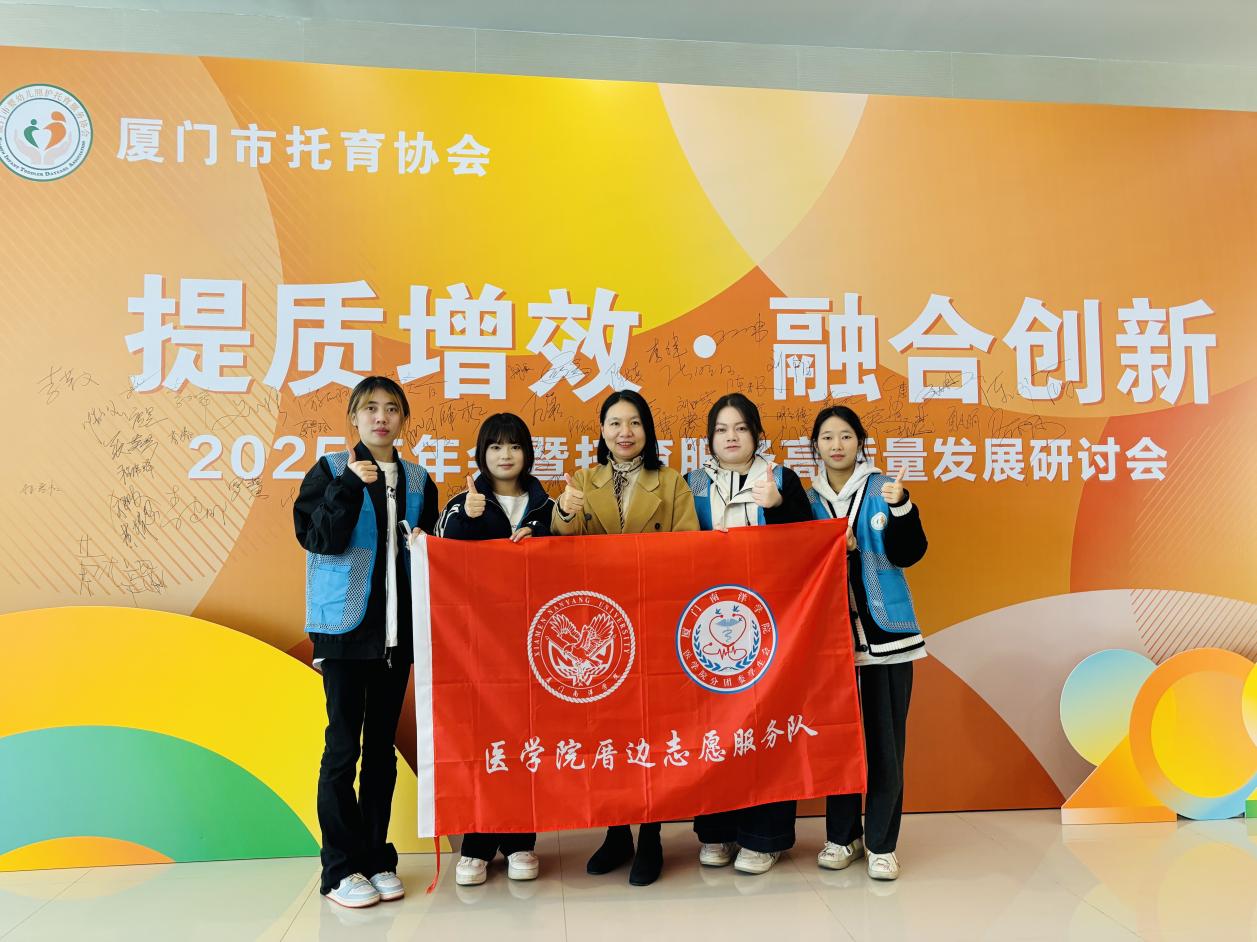 1月17日至18日,厦门市托育协会2025年年会暨第二届托育服务高质量发展研讨会在湖里区委党校成功召开。会议以“提质增效、融合创新”为主题,吸引了近两百名行业领导、专家学者及机构代表齐聚一堂,通过政策解读、专题报告、圆桌论坛等多种形式,共同探讨托育事业高质量发展新路径。医学院婴幼儿托育服务与管理专业高艳玲主任带领10名学生全程参与,同学们不仅以志愿者身份热情投入会务服务,更借此机会深入学习行业前沿报告,拓宽专业视野。